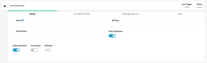 5. Name your integration and populate the other required fields with your API Key and Client Name that you generated in the Campaign Monitor steps
