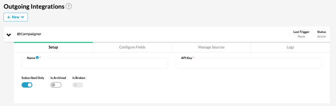 5. Input your integration name and the API Key that you saved from the last step of the Campaigner-side set up