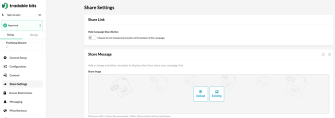 There’s rarely an instance when you’ll want to toggle off the ability for fans to share. However, some campaigns are designed specifically around a share link to create campaign virality. If you’re looking to create a campaign that spreads like wildfire, you can incentivize fans to share and then track those shares and redemptions in Tradable Bits. This gives you the ability to expand your fanbase using your existing fan networks.