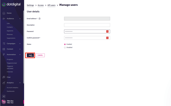 That's all for the Dotdigital side, now you can move on to complete the set up in your Tradable Bits account!