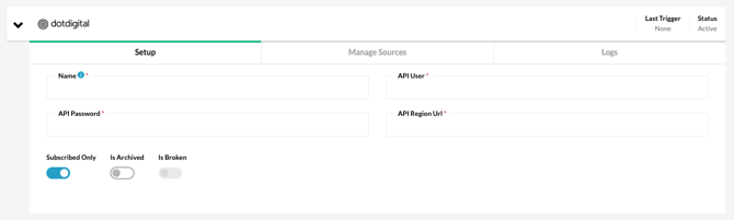 5. Name your integration and input the API Password, User (email), and Region URL that you saved from the last step of the Dotdigital set up