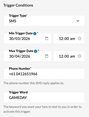 - Trigger Word: Enter the keyword you want your fans to text to you to activate this trigger.