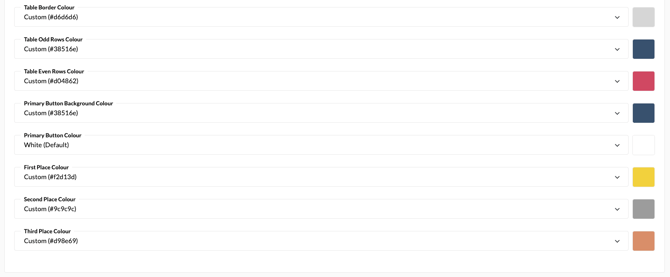 - Customise the leaderboard table colours and button displays to align with your brand's colour palette.
