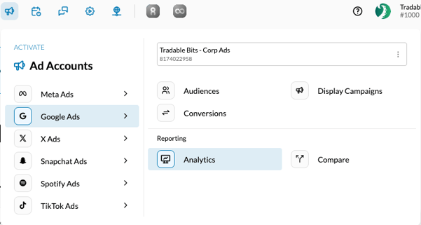 - In the Tradable Bits Homepage, hover over the Ad Accounts section in the Top Navigation Bar, click Google Ads.