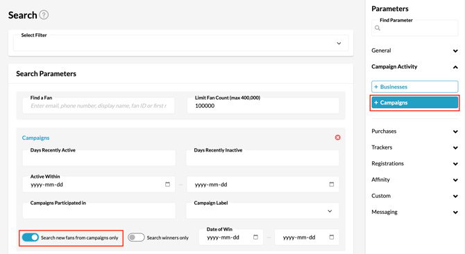 - Look for the toggle labelled "Search new fans from campaigns only". Toggle it on.