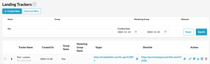 Your new tracker will display in the list. Copy and paste the shortlink URL to use in your marketing communication.