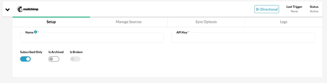 5. Click into the Manage Sources tab to select the sources that you want pushed over to your Mailchimp account. Click add