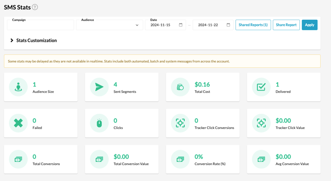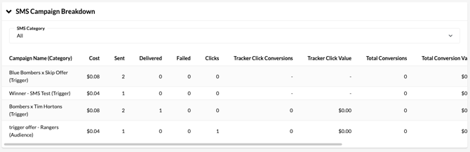 This section is where you can dive into the successes of your SMS campaign, and drill down on your KPIs to share with internal and external stakeholders.