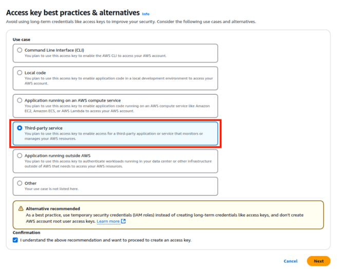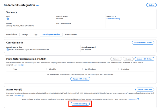 Save the Access Key and Secret Access Key somewhere secure. You will need it to complete the integration set up.