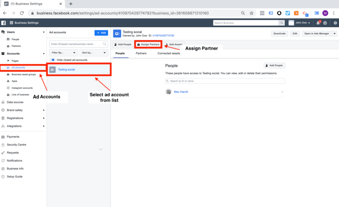 To give Tradable Bits access to your ad account, you must first invite them as an advertising partner using the following steps. This step must be taken before adding your ad account to the Tradable Bits Homepage.