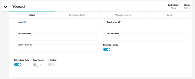 5. Input the various keys that you saved from step 4 of the iContact steps