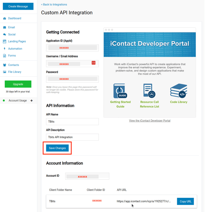 That's all for the iContact set up! You can head to your Tradable Bits account now to complete the set up.
