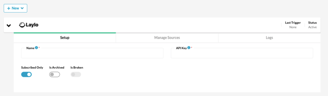 5. Input your label name and the API Key that you created and saved from the Laylo set up, into the set up fields below