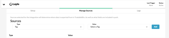 6. Click on the Manage Sources tab to select the source type and values that you want pushed over to Laylo