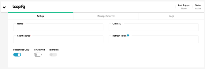 5. Input the Client ID, Client Name and Refresh Token that you saved in the last Loopify step