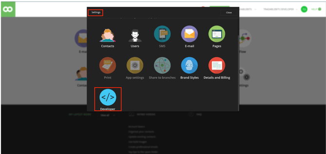 Click into Developer from the modal that appears
