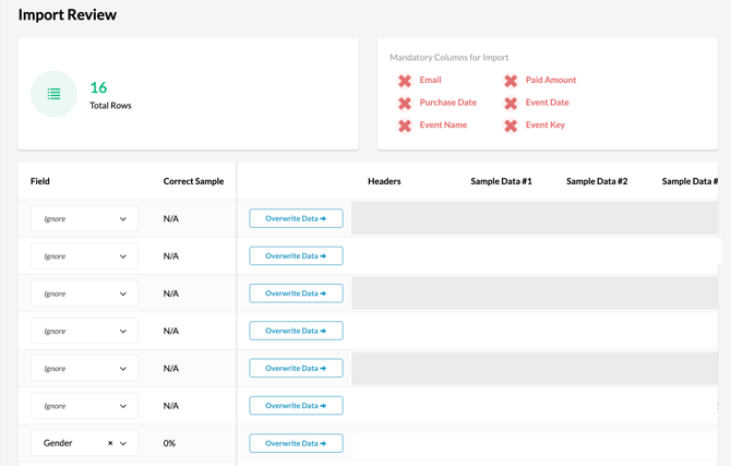 Once you upload your CSV file, you will be presented with the following page: Import Review