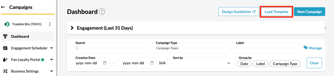 6. Go to the other business or Tradable Bits account that you want to load this engagement campaign template into and navigate to the Campaign Dashboard again