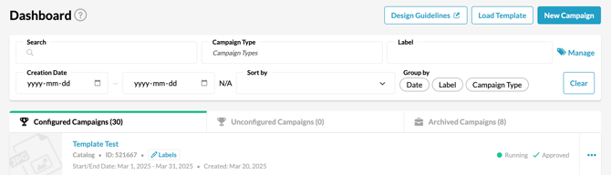 9. Your new template will now appear at the top of your campaign dashboard for you to activate